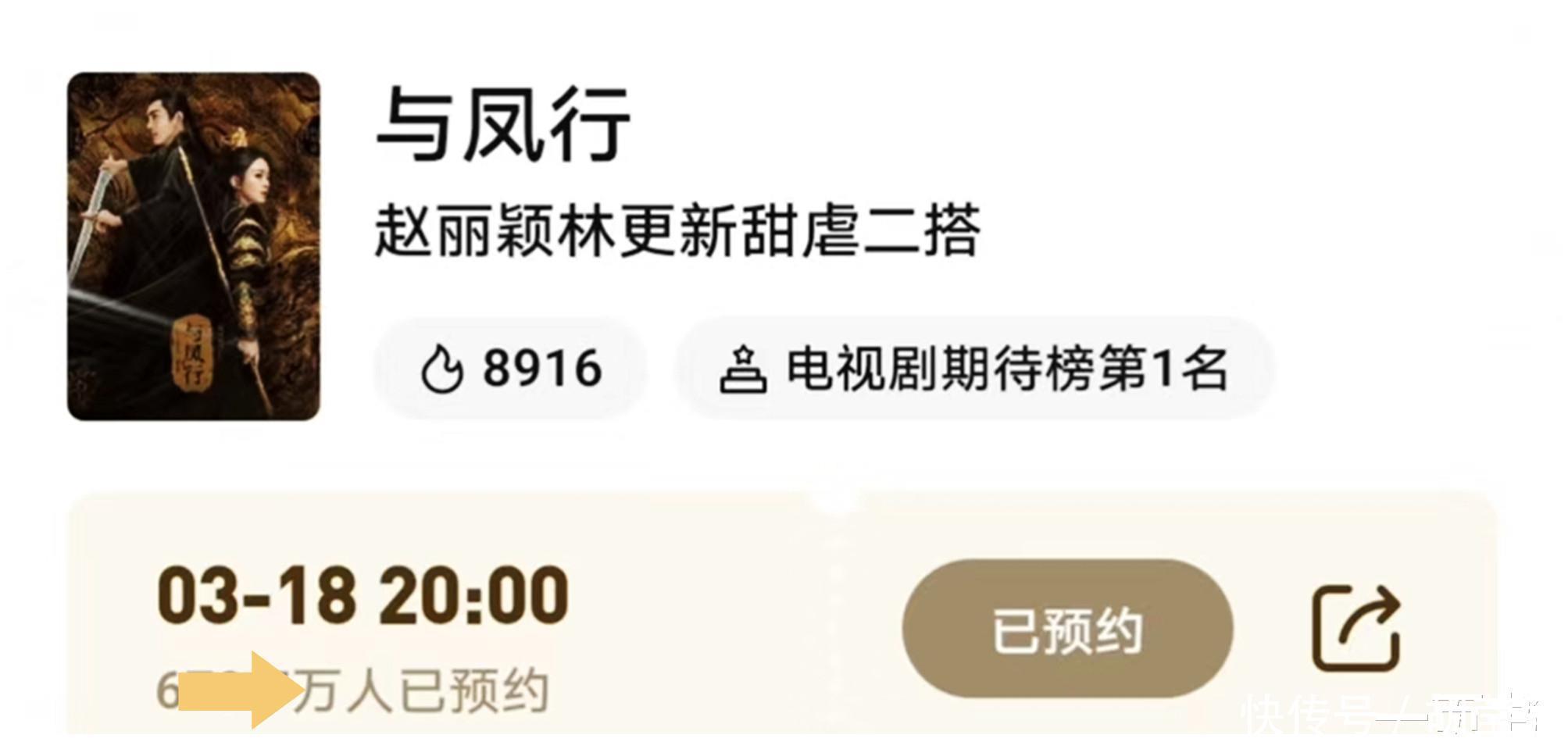 个东说念主以为很大可能是林更新和赵丽颖沿途主演的电视剧《与凤行》这部仙侠剧,当前这部剧一经定档3月18号首播,距离当今也就一周的时间了,令东说念主无比的期待,只是当前来看预约东说念主数一经冲破了690万,可以说这部剧算是未播先火了,令东说念主莫得猜想仙侠剧还有如斯大的市集。